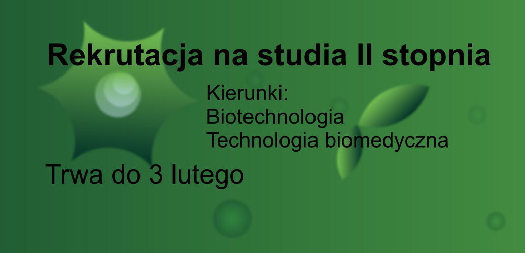 Rekrutacja na studia II stopnia z Biotechnologii i Technologii Biomedycznej trwa do 3 lutego