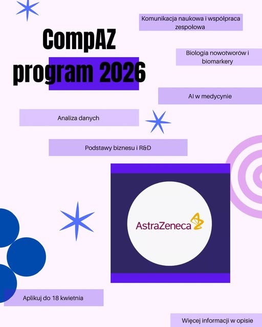 Program CompAZ 2026 – rozwój w obszarze precision medicine Studenci i doktoranci kierunków life science oraz nauk medycznych mogą wziąć udział w programie CompAZ 2026, organizowanym przez firmę AstraZeneca. [...]