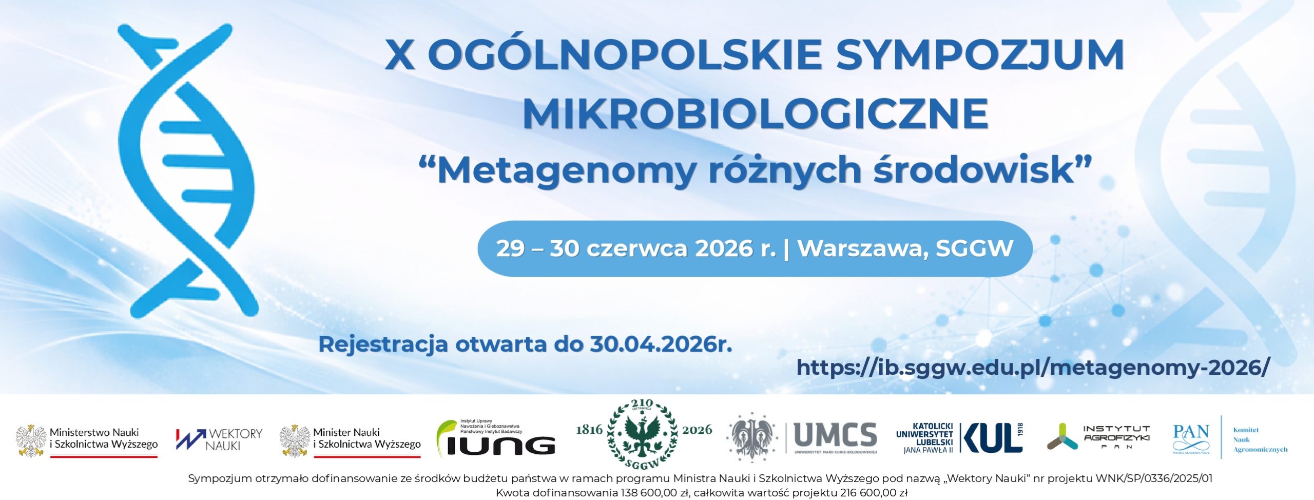 X OGÓLNOPOLSKIE SYMPOZJUM MIKROBIOLOGICZNE„METAGENOMY RÓŻNYCH ŚRODOWISK”29 – 30 czerwca 2026 roku | Warszawa Zapraszamy na dziesiątą edycję konferencji poświęconej badaniom metagenomicznym środowisk [...]