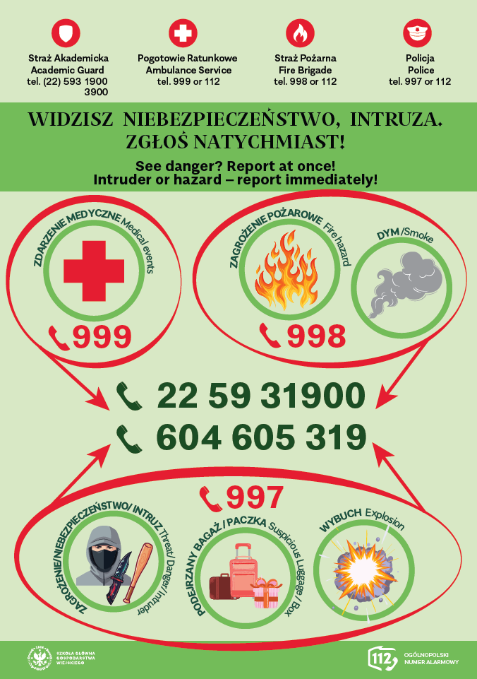 ☎️ Straż Akademicka (22) 59 31900 (33900) lub 604 605 319