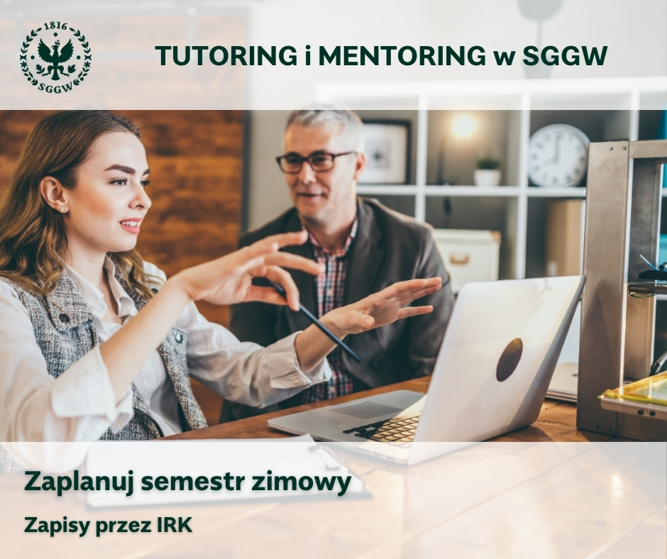 Studentko, Studencie, Doktorantko, Doktorancie – tutorig i mentoring w SGGW to inspirujące doświadczenia, w elastycznej formule, jeden na jeden, bez ocen. Odpowiedź na Twoje potrzeby i Twoje cele. Skuteczna komunikacja, krytyczne myślenie, samoorganizacja i motywacja, mocne strony, szybkie osiąganie celów, unikanie typowych błędów, nowe obszary wiedzy, zainteresowań i działań – to korzyści.