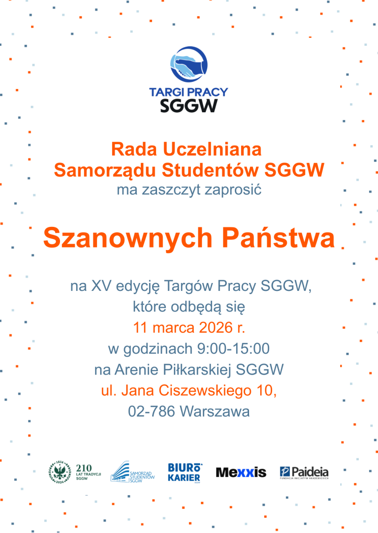 Zapraszamy na wydarzenie 11 marca 2026 roku w godzinach 9:00–15:00 na terenie Areny Piłkarskiej w Obiektach Sportowych SGGW.